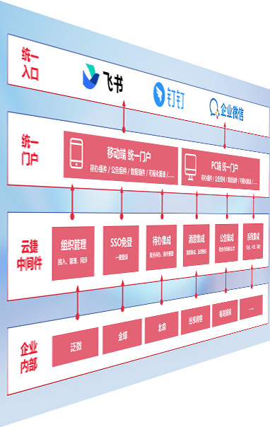 对协作平台提供支持服务,,支持企业应用与协作平台对接,,,,包含组织同步、、、、消息集成、、、、待办集成等。。支持目前主流的协作平台:钉钉、、、、企微和飞书。。。